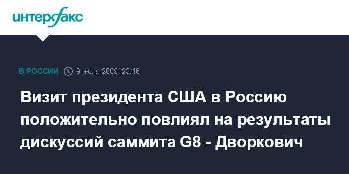 "Визит президента Обамы в Москву очень положительно влияет на то, как достигается согласие на саммите G8", - сказал А.Дворкович на брифинге, отвечая на вопросы журналистов.