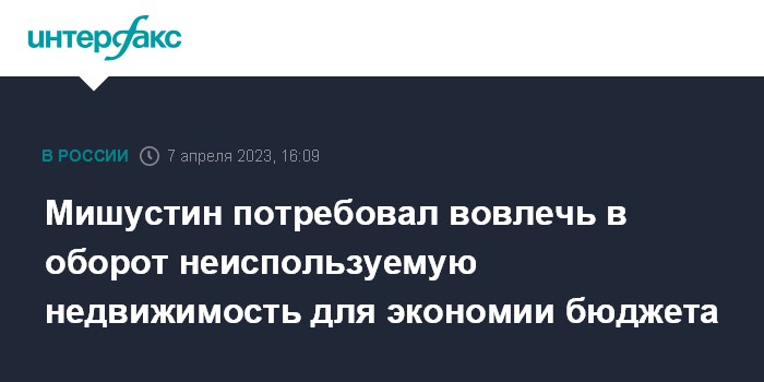 Москва. 7 апреля. INTERFAX.RU - Необходимо вовлекать в оборот неиспользуемые здания и объекты незавершенного строительства, заявил на заседании правительства премьер-министр Михаил Мишустин.