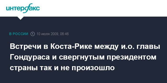Встречи в Коста-Рике между и.о. главы Гондураса и свергнутым президентом страны так и не произошло