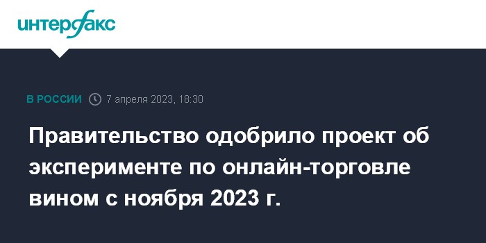 Москва. 7 апреля. INTERFAX.RU - Правительство РФ на заседании в пятницу рассмотрело законопроект о проведении эксперимента по розничной онлайн-продаже отечественного вина.