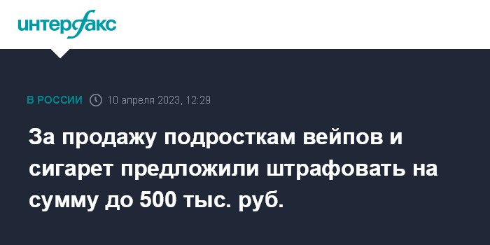 За продажу подросткам вейпов и сигарет предложили штрафовать на сумму до 500 тыс. руб.