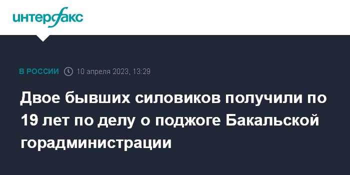 Двое бывших силовиков получили по 19 лет по делу о поджоге Бакальской горадминистрации