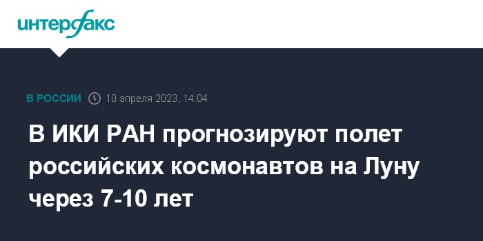 Москва. 10 апреля. INTERFAX.RU - Российские космонавты смогут полететь на Луну в ближайшее десятилетие, считает ведущий научный сотрудник Института космических исследований (ИКИ) РАН Натан Эйсмонт.