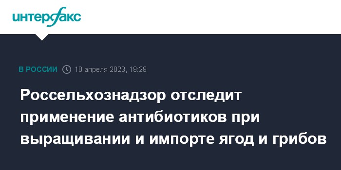 Москва. 10 апреля. INTERFAX.RU - Россельхознадзор намерен контролировать наличие антибиотиков в выращенных внутри страны и импортированных плодах, ягодах и грибах.