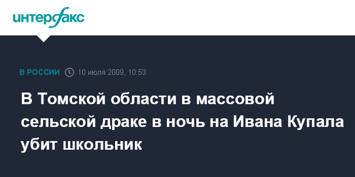 В Томской области в массовой сельской драке в ночь на Ивана Купала убит школьник