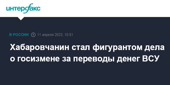 Москва. 11 апреля. INTERFAX.RU - ФСБ сообщила о задержании жителя Хабаровска, переводившего деньги украинской армии, возбуждено дело по статье о госизмене.