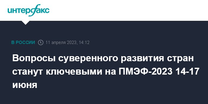 Вопросы суверенного развития стран станут ключевыми на ПМЭФ-2023 14-17 июня