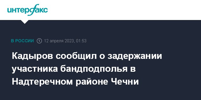 Москва. 12 апреля. INTERFAX.RU - Глава Чечни Рамзан Кадыров сообщил о задержании в селе Гвардейское Надтеречного района республики вооруженного участника бандитского подполья.