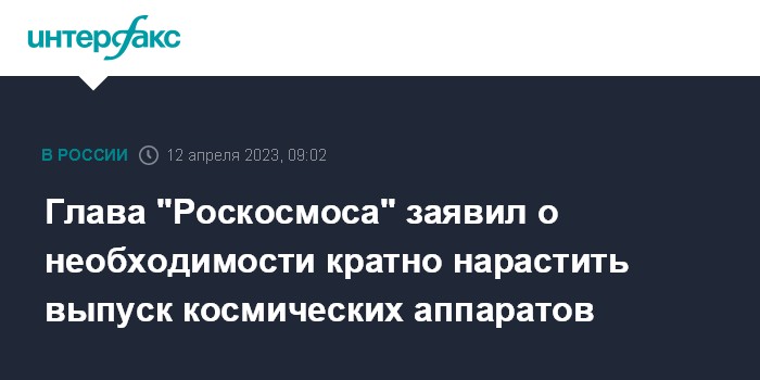 Москва. 12 апреля. INTERFAX.RU - Глава "Роскосмоса" Юрий Борисов заявил о необходимости более активного внедрения современных технологий в российскую космическую отрасль и наращивания производства космических аппаратов.