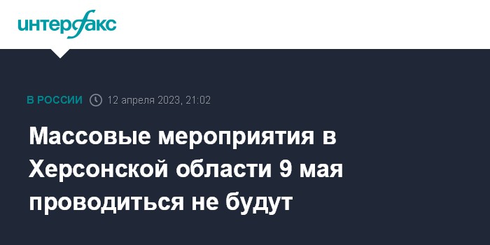 Москва. 12 апреля. INTERFAX.RU - В Херсонской области массовые мероприятия 9 мая проводиться не будут, сообщил врио губернатора региона Владимир Сальдо.