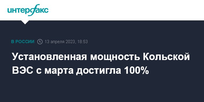 Москва. 13 апреля. INTERFAX.RU - Установленная мощность ветропарка Кольская ВЭС с 1 марта 2023 года составила 100%, говорится в отчете ПАО "ЭЛ5-Энерго".