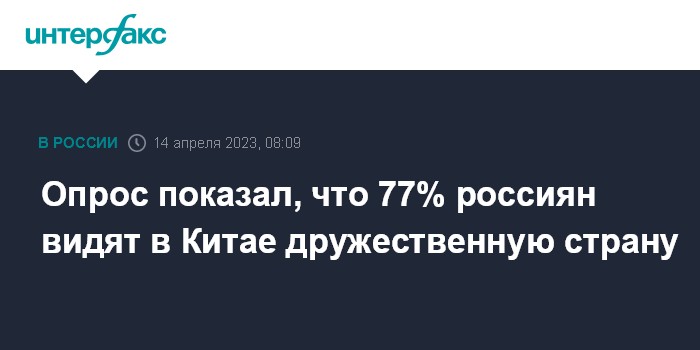 Опрос показал, что 77% россиян видят в Китае дружественную страну