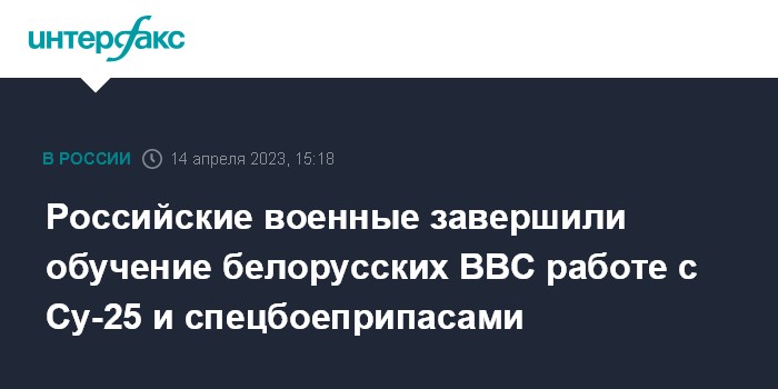 Москва. 14 апреля. INTERFAX.RU - Минобороны России сообщило, что завершило обучение белорусских военных эксплуатации штурмовиков Су-25.
