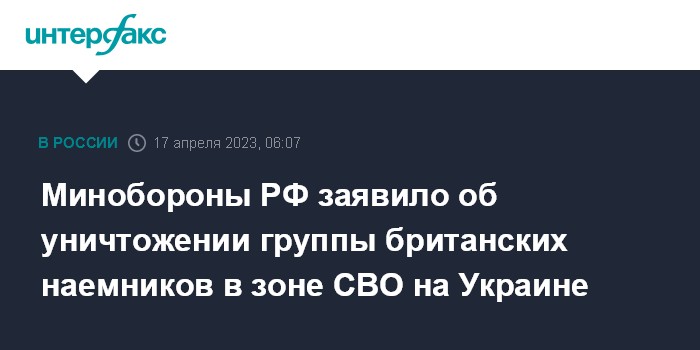 Минобороны РФ заявило об уничтожении группы британских наемников в зоне СВО на Украине