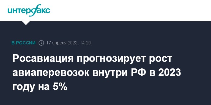 В прошлом году, по данным Росавиации, пассажиропоток внутри РФ составил 77,7 млн человек. Таким образом, в 2023 году показатель может вырасти более чем на 5%.