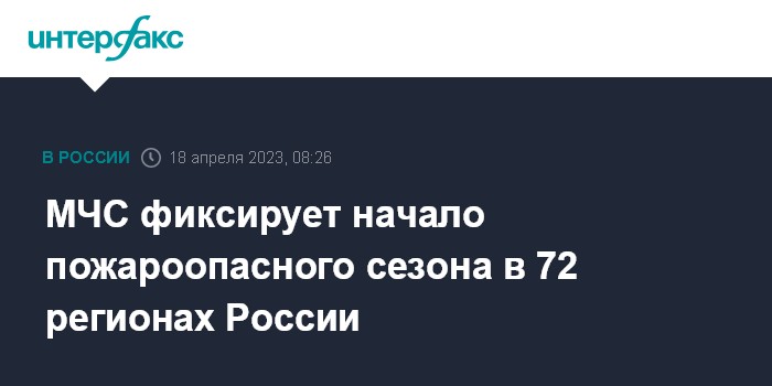 Москва. 18 апреля. INTERFAX.RU - Пожароопасный сезон открыт в 72 регионах России, а в 28 действует особый противопожарный режим, сообщила пресс-служба МЧС.