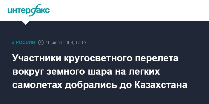 Москва. 10 июля. INTERFAX.RU - В казахстанский город Атырау в пятницу на 11-ти частных самолетах прилетели участники международного кругосветного перелета, сообщает корреспондент агентства "Интерфакс-Казахстан".