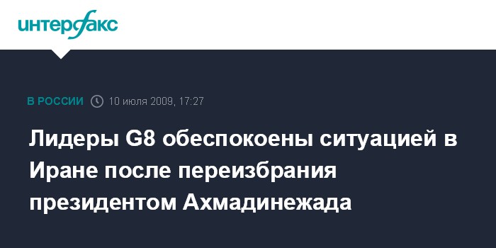 Лидеры G8 обеспокоены ситуацией в Иране после переизбрания президентом Ахмадинежада