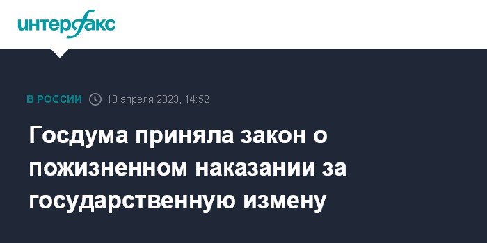 Госдума приняла закон о пожизненном наказании за государственную измену