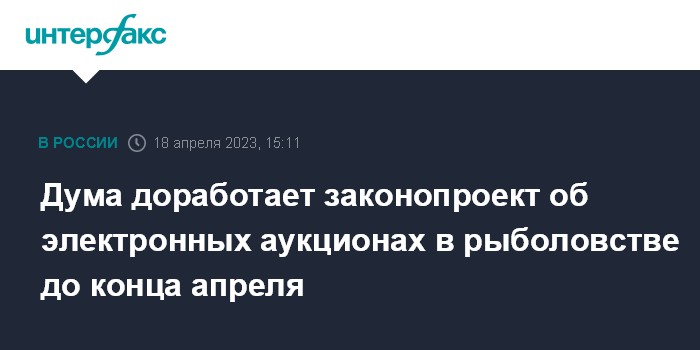 Москва. 18 апреля. INTERFAX.RU - Госдума вернула во второе чтение законопроект, который прописывает возможность проведения в России торгов рыбой и другими видами биологических ресурсов в электронном виде, поправки к законопроекту принимаются профильным комитетом до 29 апреля.