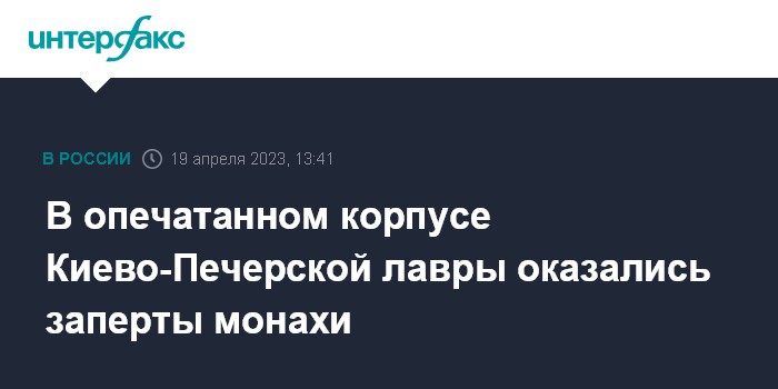 Москва. 19 апреля. INTERFAX.RU - Прихожане Киево-Печерской лавры в среду днем ворвались в опечатанную полицией дверь одного из корпусов монастыря и обнаружили, что там были заперты монахи.
