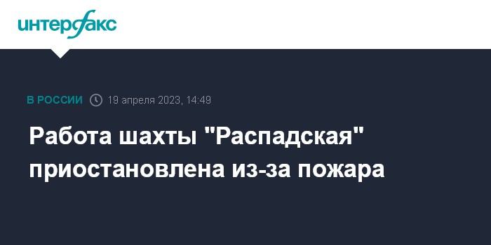 Москва. 19 апреля. INTERFAX.RU - Работа шахты "Распадская" приостановлена, сообщили "Интерфаксу" в министерстве угольной промышленности Кузбасса.