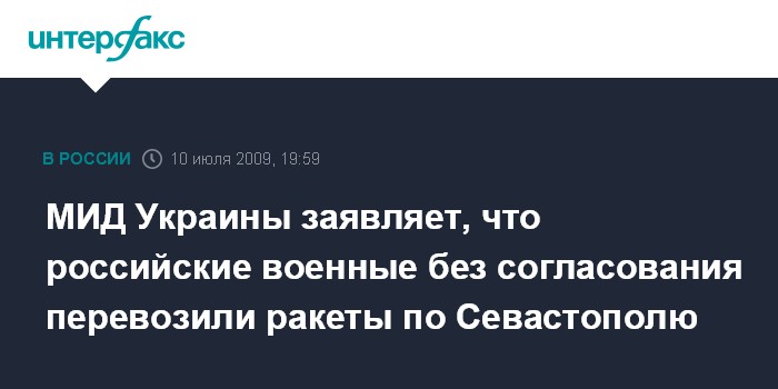 Москва. 10 июля. INTERFAX.RU - В МИД Украины подтвердили информацию СМИ о задержании в Севастополе автомобилей Черноморского флота Российской Федерации, перевозивших крылатые ракеты.