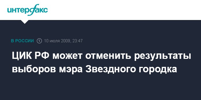ЦИК РФ может отменить результаты выборов мэра Звездного городка