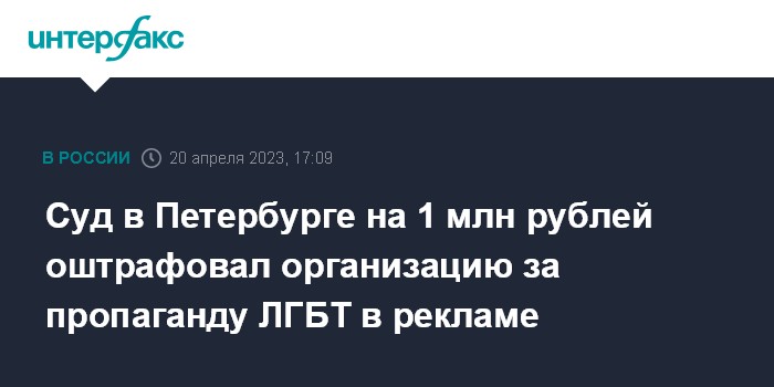 Суд в Петербурге на 1 млн рублей оштрафовал организацию за пропаганду ЛГБТ в рекламе