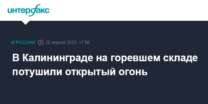 Москва. 20 апреля. INTERFAX.RU - В Калининграде пожарные потушили открытый огонь на одноэтажном складе, сообщили "Интерфаксу" в ГУ МЧС по Калининградской области.