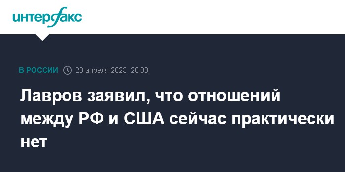 Москва. 20 апреля. INTERFAX.RU - Отношения Москвы и Вашингтона в настоящий момент практически отсутствуют, они сводятся к обсуждению вопросов функционирования дипмиссий, заявил в четверг глава МИД РФ Сергей Лавров.