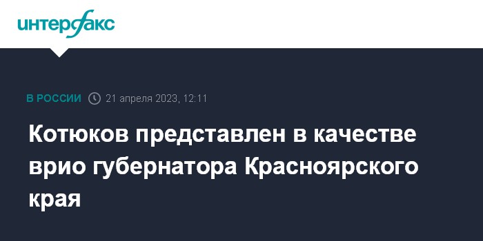 Ранее президент РФ Владимир Путин принял отставку губернатора Красноярского края Александра Усса по собственному желанию и назначил замминистра финансов РФ Котюкова врио главы региона до вступления в должность избранного на этот пост лица.