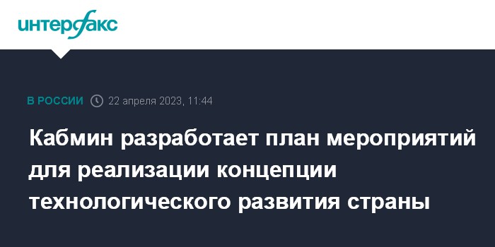 Москва. 22 апреля. INTERFAX.RU - Концепция технологического развития на период до 2030 года, над которой завершает работу кабинет министров, направлена на обеспечение независимости в создании технологий, разработок и инженерных решений, освоение выпуска критически значимой продукции.