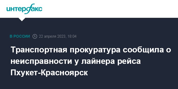 Транспортная прокуратура сообщила о неисправности у лайнера рейса Пхукет-Красноярск