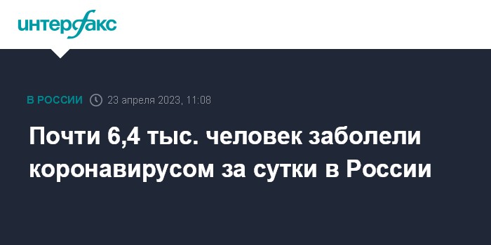 Москва. 23 апреля. INTERFAX.RU - Суточный прирост заболевших коронавирусной инфекцией в РФ составил 6 389 случаев, следует из данных оперативного штаба, обнародованных в воскресенье.