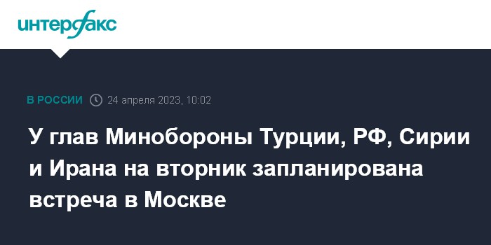 "Четырехсторонняя встреча глав Минобороны и разведслужб Турции, РФ, Ирана и режима президента Сирии Башара Асада планируется на вторник, 25 апреля в Москве", - передает агентство Anadolu слова министра.