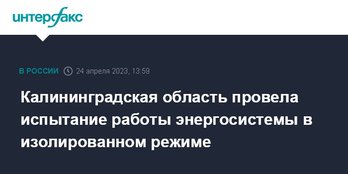 Москва. 24 апреля. INTERFAX.RU - Энергосистема Калининградской области штатно отработала очередные испытания работы в изолированном режиме, сообщила пресс-служба губернатора региона Антона Алиханова.