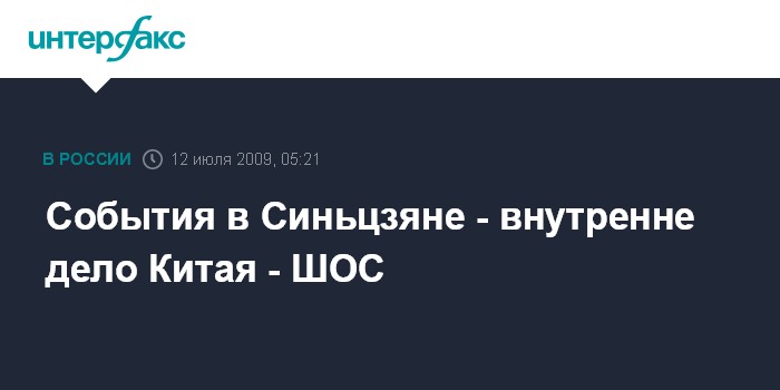 Пекин. 12 июля. ИНТЕРФАКС-КИТАЙ - События в столице Синьцзян-Уйгурского автономного района КНР (СУАР) городе Урумчи 5 июля 2009 года являются внутренним делом Китая, заявила Шанхайская организация сотрудничества (ШОС).
