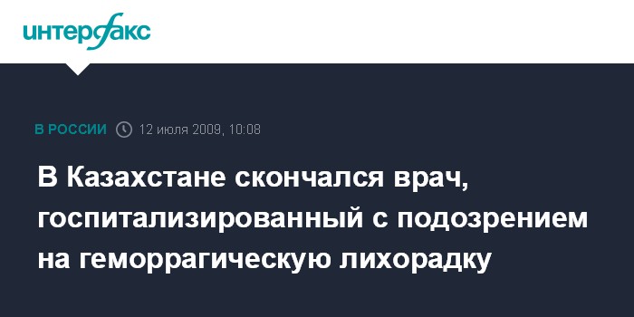 Астана/Чимкент. 12 июля. INTERFAX.RU - В Южно-Казахстанской области (ЮКО) скончался мужчина, госпитализированный ранее с подозрением на конго-крымскую геморрагическую лихорадку.