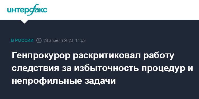 Генпрокурор раскритиковал работу следствия за избыточность процедур и непрофильные задачи