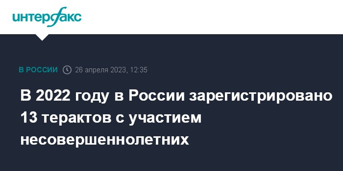 В 2022 году в России зарегистрировано 13 терактов с участием несовершеннолетних
