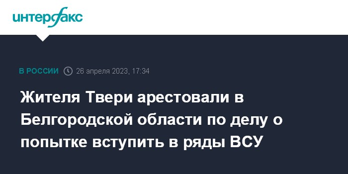 Жителя Твери арестовали в Белгородской области по делу о попытке вступить в ряды ВСУ