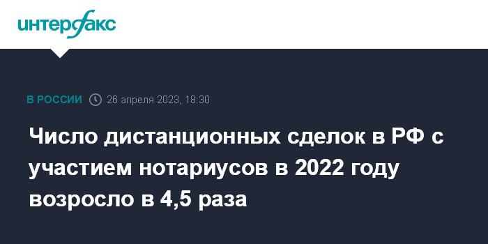 Число дистанционных сделок в РФ с участием нотариусов в 2022 году возросло в 4,5 раза