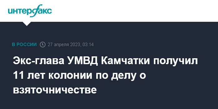 Экс-глава УМВД Камчатки получил 11 лет колонии по делу о взяточничестве