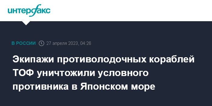 Москва. 27 апреля. INTERFAX.RU - Учение по поиску, обнаружению и уничтожению подводной лодки условного противника с участие двух больших противолодочных кораблей прошли в Приморском крае, сообщает в четверг пресс-служба Тихоокеанского флота (ТОФ).