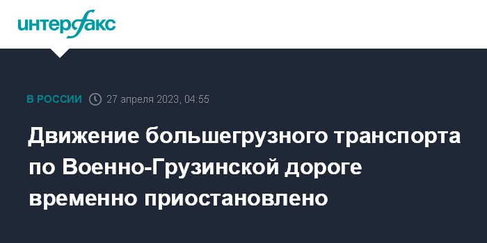 "В связи с ухудшением погодных условий на территории Грузии (...) запрещено движение большегрузных автотранспортных средств на участке Владикавказ - Ларс в направлении на выезд из Российской Федерации с 04:00 по Москве 27 апреля 2023 года до особого распоряжения", - говорится в сообщении.