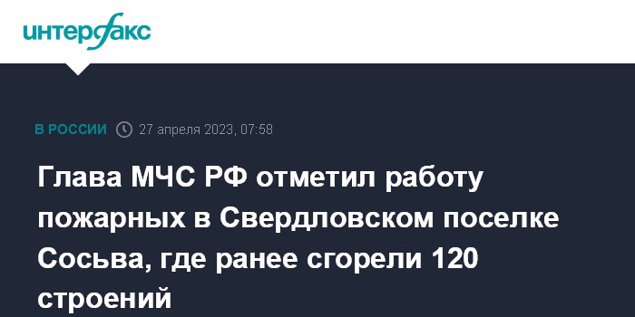 Ранее в четверг сообщалось, что глава МЧС РФ Александр Куренков прибыл в Свердловскую область, где ранее вспыхнули несколько пожаров.