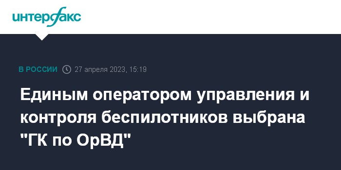 Москва. 27 апреля. INTERFAX.RU - Единым оператором линии управления и контроля беспилотных авиационных систем в России выбрано ФГУП "Госкорпорация по организации воздушного движения" (ГК по ОрВД), сообщил замруководителя Росавиации Дмитрий Ядров в Совете Федерации.