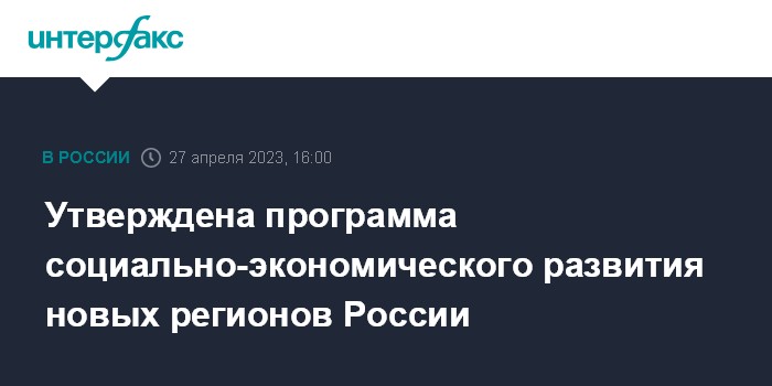 Москва. 27 апреля. INTERFAX.RU - Правительство утвердило программу социально-экономического развития (СЭР) новых регионов России, сообщила пресс-служба Минстроя.