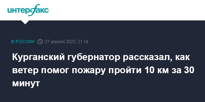 Москва. 27 апреля. INTERFAX.RU - Губернатор Курганской области Вадим Шумков побывал на местах крупных пожаров, рассказал в Telegram подробности и призвал земляков ничего не поджигать, немедленно сообщать властям о поджогах и самим задерживать поджигателей.